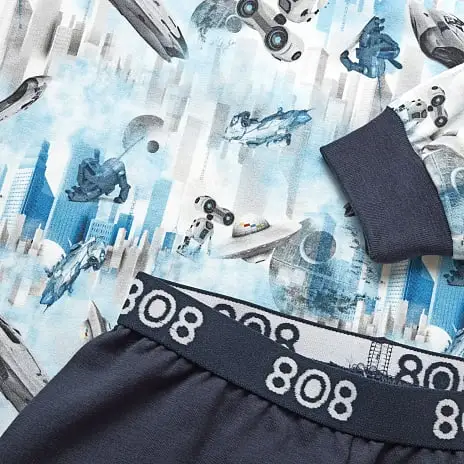 808 nattøjssæt med print. Dette sæt indeholder 96% bomuld (økologisk). Findes i flere størrelser.