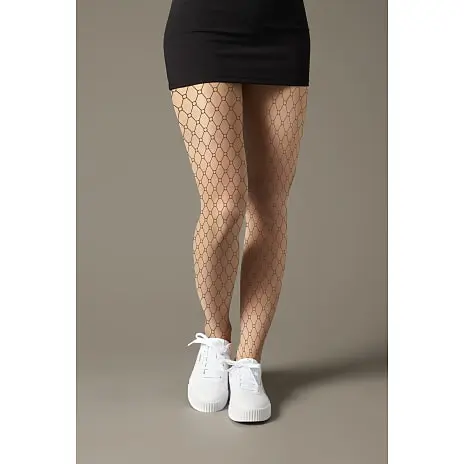 Den er med et flot næsten sekskantet og cirkel mønster, som strækker sig fra lår til fødder. Strømpebuksen er i 35 deniers transparens, som er et fint mellemstadie af gennemsigtigheden på en strømpebuks.