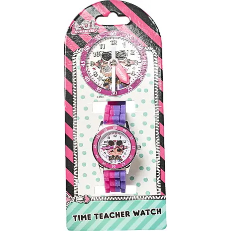 Lær-klokken ur med LOL design. På viserne kan dit barn se, hvilken viser der er timer og hvilken viser der er minutter. Urværket er batterdrevet. Uret er i rustfrit stål og har silikone rem.