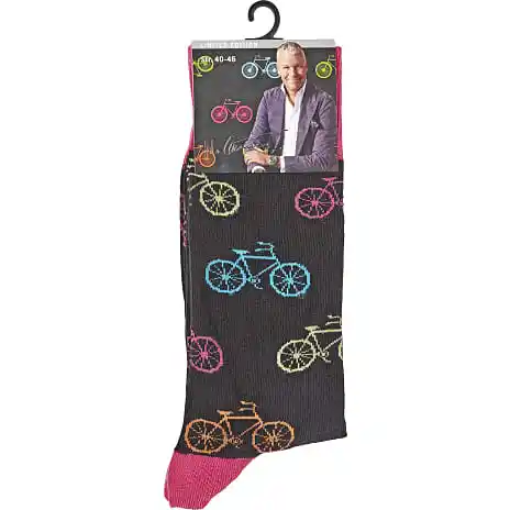 Smart bomuldstrømpe fra Mads Christensen. Sort med cykelprint.