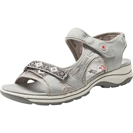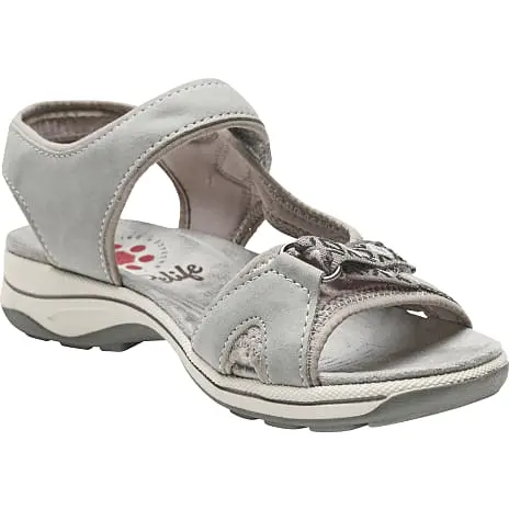 Sporty Relife damesandal i blødt materiale. Sandalen har to justerbare velcroremme ovenpå foden og ved vristen hvilket sikrer en perfekt pasform. En stødabsorberende komfortable sandal som er perfekt til gåturen og al udendørs aktivitet.