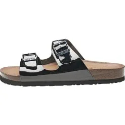 Skechers sandalen er en komfortable sandal i et tidsløs design. Remme i flot lak design. Justerbare spænder på remmene. Relaxed Fit design for en mere rummelig pasform. Luxe Foam støddæmpemde komfort indersål. Anatomisk formet fodsend for øget støtte og komfort. Naturlig korkbelagt mellemsål. Fleksible ydersål i gummi.