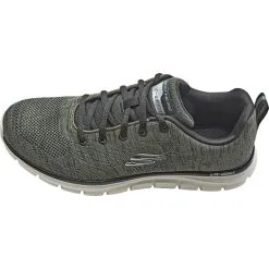 Letvægts Skechers sneakers. Armygrøn med sorte snørebånd og kontraster. Sål i memory foam. Kan vaskes i maskinen ved 30 grader. Model 232298/OLBK Front runner