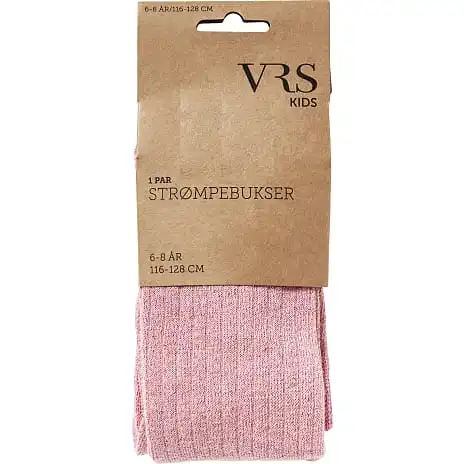 VRS børne strømpebuks i lyserød farve med glitter. Størrelse 3-5 år, 98-110 cm. Strømpebuksen er fremstillet af 70% bomuld (økologisk).