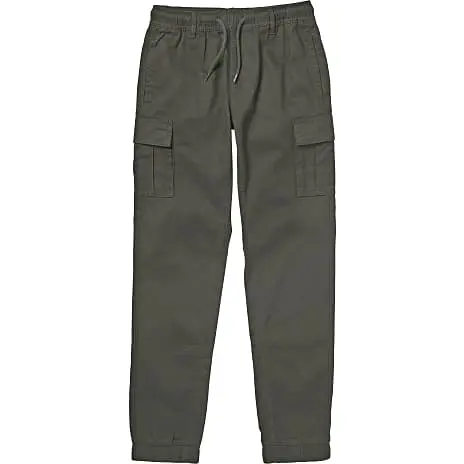 Cargobukser i mørkegrøn med snørre i livet. Bukserne indeholder indeholder 100% bomuld (økologisk). Findes i flere størrelser.
