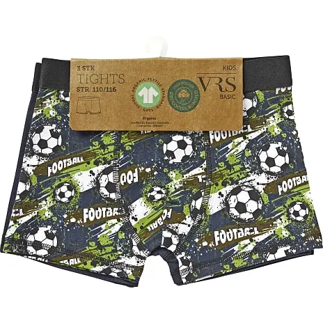 3-pak boxershorts bestående af en printet og to ensfarvede. Disse boxershorts til børn indeholder 95% bomuld (økologisk) og er GOTS certificeret. Findes i flere størrelser.