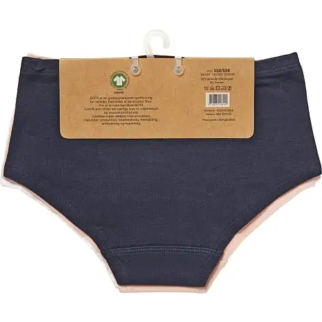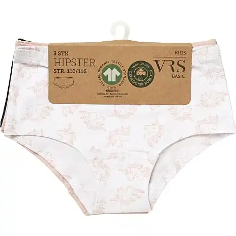3-pak hipsters bestående af en printet, en ensfarvet med et lille print og en ensfarvet. Disse hipsters indeholder 95% bomuld (økologisk) og er GOTS certificeret. Findes i flere størrelser.