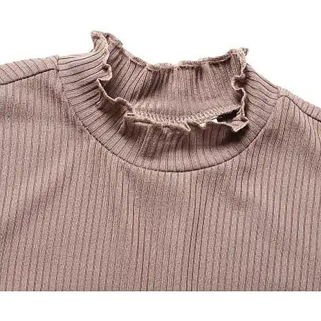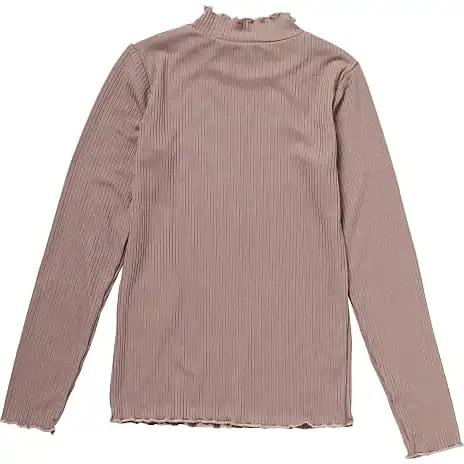 Langærmet bluse i rib med babylock detaljer. Blusen findes i flere størrelser.