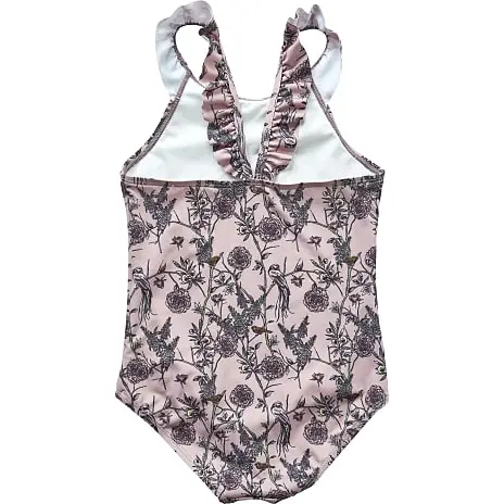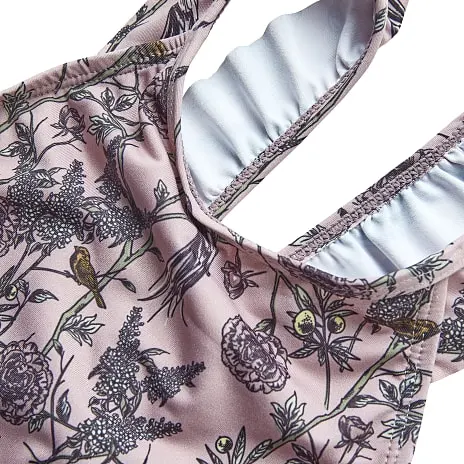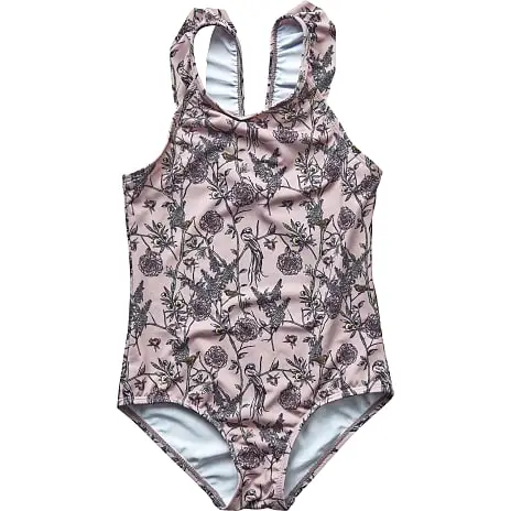 VRS badedragt med print og flæsedetaljer. Badedragten findes i flere størrelser.