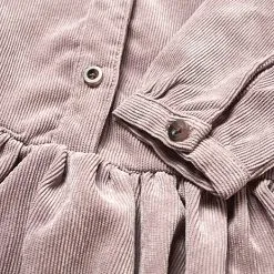 Fløjlskjole til børn med krave og knaplukning. Overskæring forneden