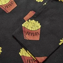 Nattøjssæt i bomuldsjersey med pommes frites print. Dette nattøjssæt indeholder 100% bomuld (økologisk). Findes i flere størrelser.