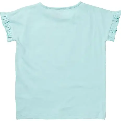 Jersey t-shirt med flæsedetaljer på ærmerne og frontprint. T-shirten findes i flere størrelser.
