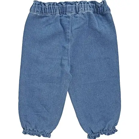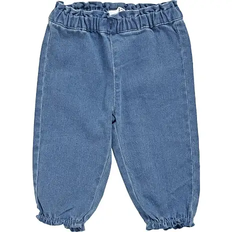 Bukser til baby i denim kvalitet. Bukserne har elastik ved taljen og benåbningen.