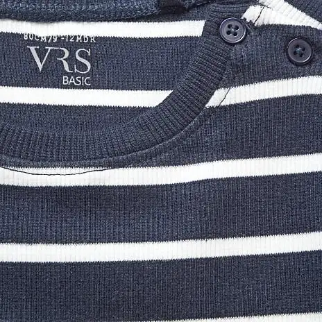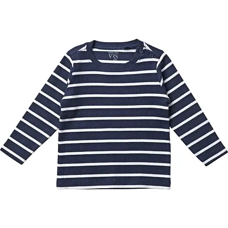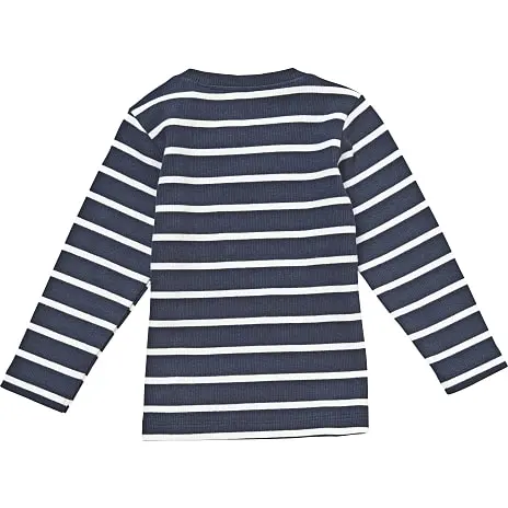 Langærmet rib bluse med striber. Denne bluse indeholder 95% bomuld (økologisk) og er GOTS certificeret. Findes i flere størrelser.