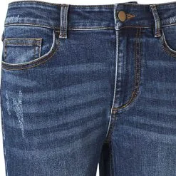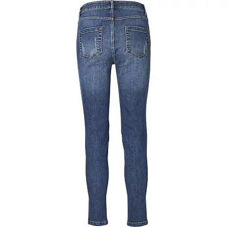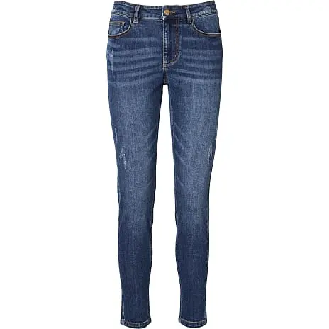 Basis 7/8 længde denim jeans Freja. Buksen er i strækbar kvalitet, med høj talje, er tætsiddende og med smalle ben. Buksen indeholder 70% økologisk bomuld.