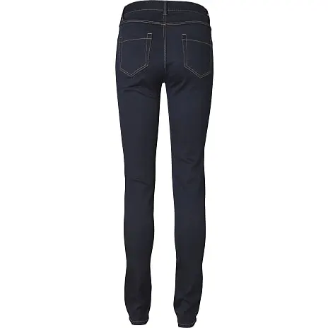 Basis denim jeans Freja. Buksen er i strækbar kvalitet, med høj talje, er tætsiddende og med smalle ben. Buksen indeholder 65% økologisk bomuld.