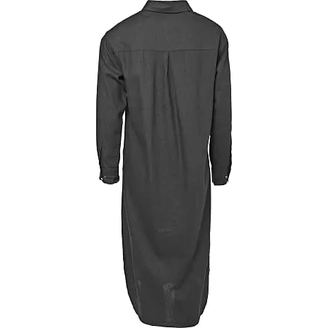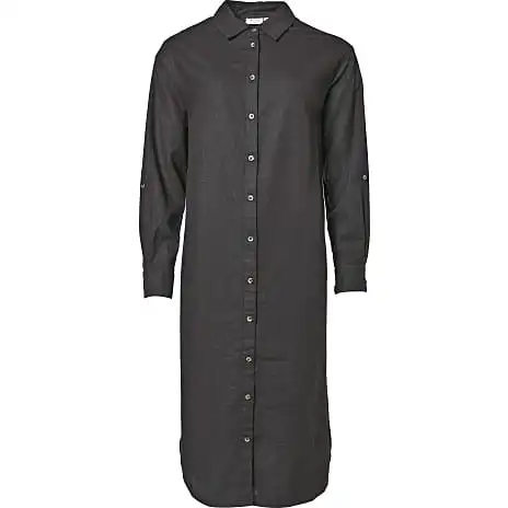Kjole med krave, drop down skulder, knapper og lange ærmer som kan foldes op til 3/4 ærmer. Kjolen er vævet i en behagelig kvalitet, der giver et afslappet look.