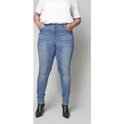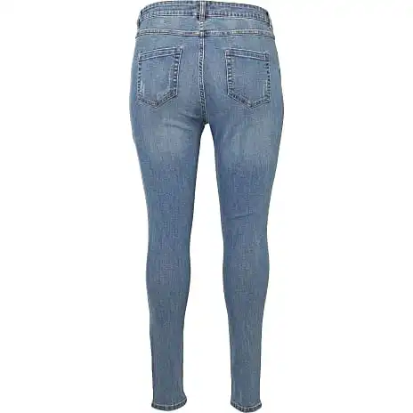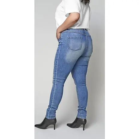 Basis denim jeans Julie. Buksen er i strækbar kvalitet, med høj talje og smalle ben. Buksen indeholder 70% økologisk bomuld.